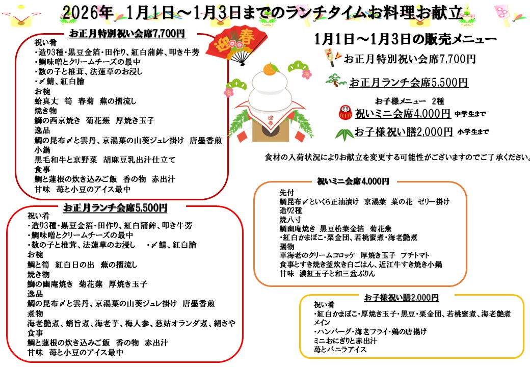 アレルギー等は前日までにお知らせ頂きますようにお願い致します。