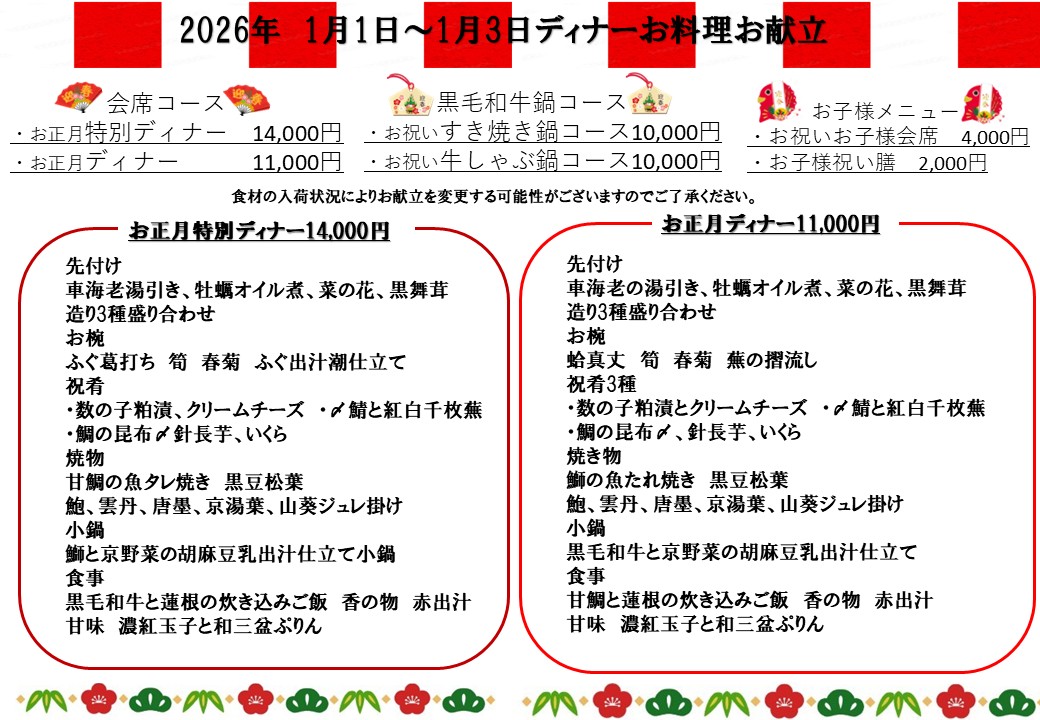アレルギー等は前日までにお知らせ頂きますようにお願い致します。